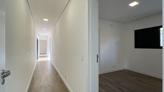 Com 580 m² de terreno e 364 m² de área construída, a casa oferece ambientes amplos e funcionais. São 4 suítes, incluindo uma suíte com acessibilidade, todas planejadas para atender às necessidades da família com conforto e praticidade.