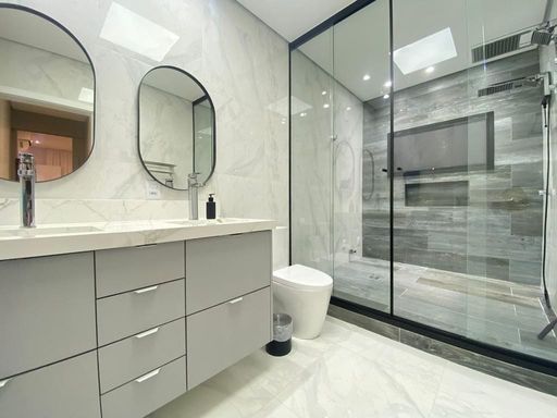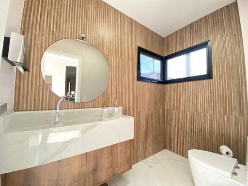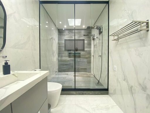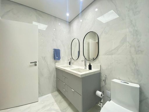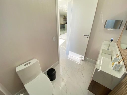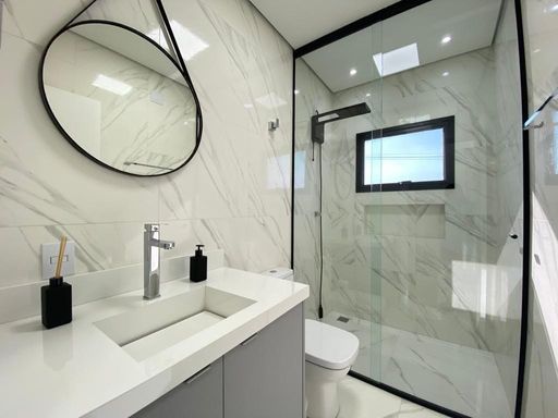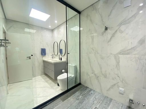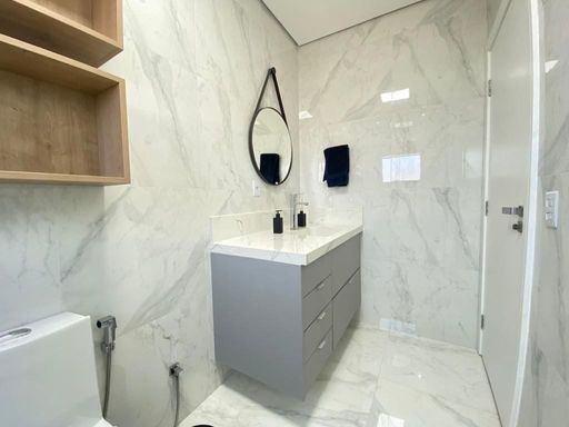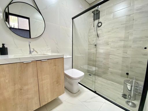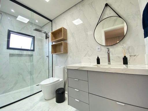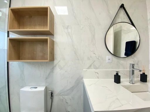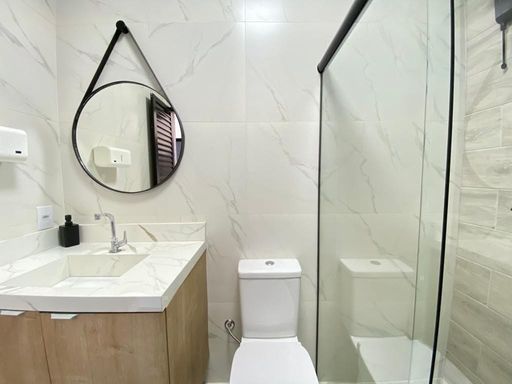 - Banheiros completos com box até o teto, duchas higiênicas e iluminação diferenciada
