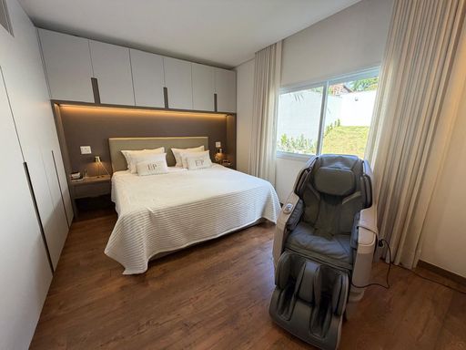 A área íntima dispõe de 3 suítes confortáveis, sendo 1 suíte master, todas com excelente iluminação natural e climatização. Os ambientes internos são amplos, integrados e bem distribuídos, proporcionando uma experiência de moradia moderna e acolhedora.