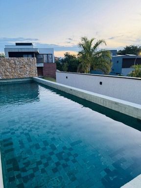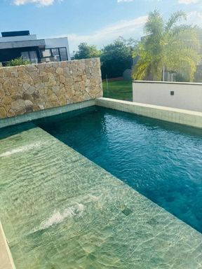 - Piscina com pedra Hijau, iluminação e preparação para aquecimento solar