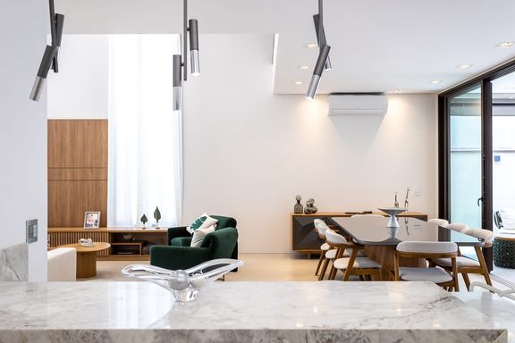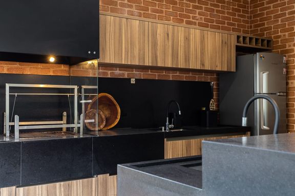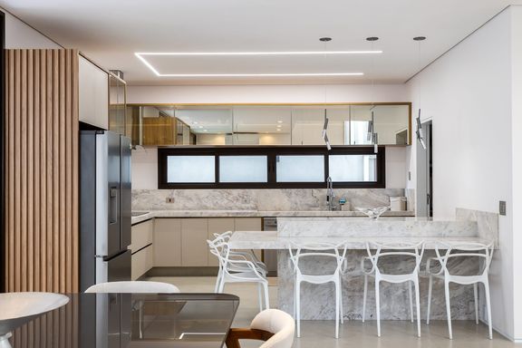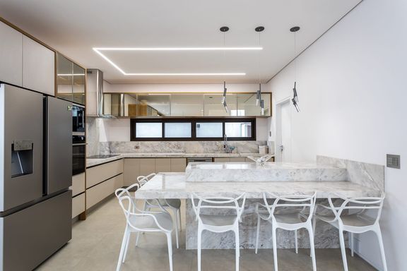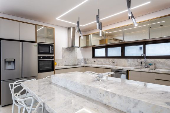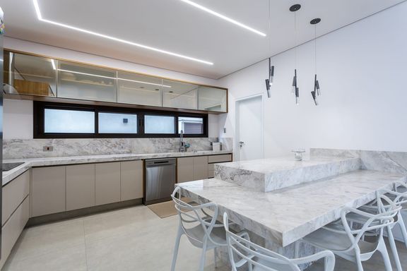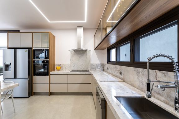 - Cozinha com bancada em mármore