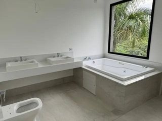 O imóvel dispõe de quatro suítes, incluindo uma máster com closet, hidromassagem dupla, bancada com pia dupla e chuveiro duplo, garantindo requinte e privacidade. A área social é marcada pelo living integrado com pé-direito duplo, sala de estar e jantar, além de cozinha moderna conectada à área gourmet.