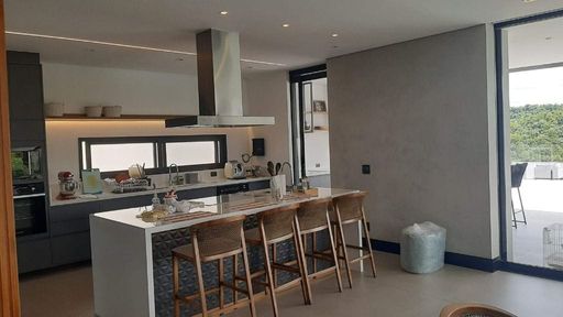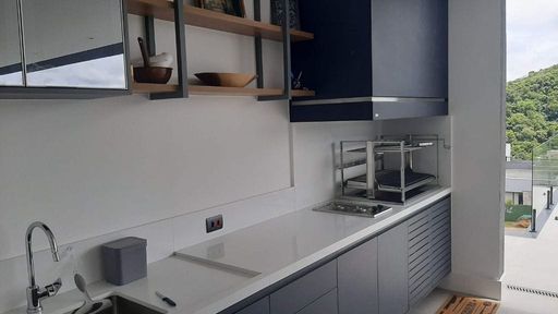 Entre os diferenciais, a residência conta ainda com adega, roupeiro no pavimento das suítes, oficina para motos com banheiro privativo (reversível para ateliê ou estúdio), suíte para funcionária, lavanderia completa e sistema de aquecimento híbrido solar, a gás e elétrico.