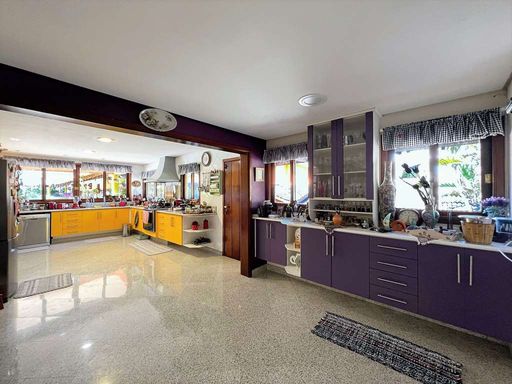 * Cozinha grande repleta de armários planejados, voltada para o lazer com jardim, bancada de granito em “U” com 3 cubas e grande despensa. Fogão 5 bocas Electrolux, coifa e geladeira Brastemp