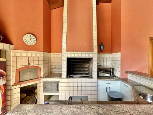 - Varanda gourmet integrada à piscina, com churrasqueira, forno de pizza e fogão à lenha.