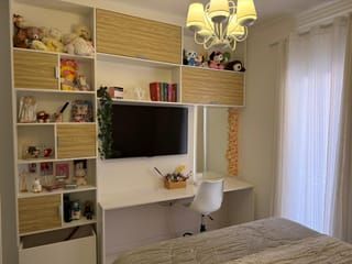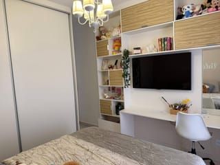 Entre os diferenciais, destacam-se os ambientes amplos e bem ventilados, portas amplas em vidro que favorecem a iluminação natural, piso em porcelanato, além de teto com sanca em gesso e iluminação em LED, que valorizam os ambientes. O sobrado também possui móveis planejados em todos os cômodos, proporcionando mais praticidade e aproveitamento de espaço.