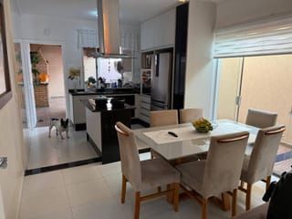 A residência conta com 3 dormitórios, sendo 1 suíte, todos bem iluminados e arejados. A sala de estar com sacada proporciona um ambiente acolhedor e agradável, enquanto a sala de jantar complementa o espaço social, criando um ambiente ideal para convivência em família.