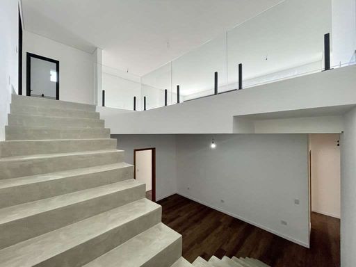 - Escada em alvenaria com acabamento em cimento queimado.
