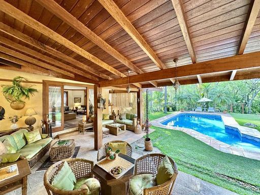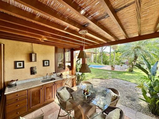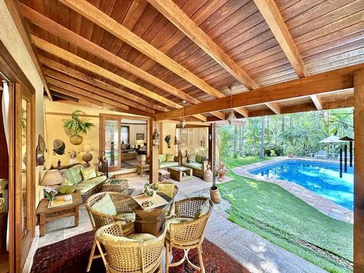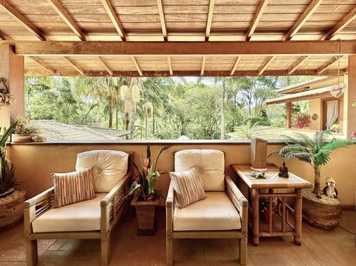 - Varanda confortável voltada para jardim e piscina, ideal para café da manhã ou aperitivos