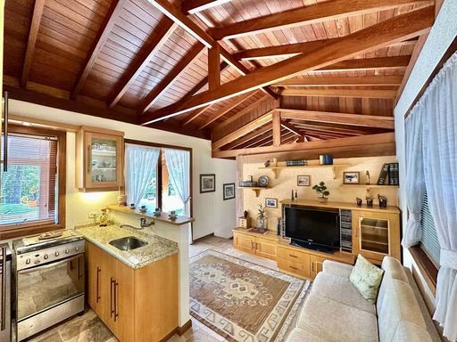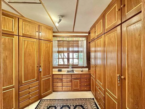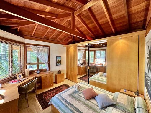 O imóvel é repleto de armários e possui madeiramento todo em Freijó (pisos, portas, janelas, portas balcão e venezianas), além de projeto de iluminação sofisticado. Os pisos variam entre pedra Goiás com molduras em madeira, tábuas largas em Freijó, porcelanato rústico, cerâmica e carpete.