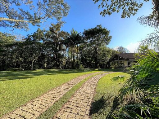 Pitale Imóveis apresenta esta linda propriedade na Fazendinha – Granja Viana, uma oportunidade única para quem busca contato com a natureza, tranquilidade e privacidade em excelente localização. O terreno é simplesmente espetacular: são 10.490 m² quase planos, com leve ondulação, bosque belíssimo com trilhas e pátios, além de um jardim formado por mata nativa, gramado amplo e diversas árvores frutíferas como caqui, mexerica, limão, manga, jaca, abacate, kinkan e grapefruit. A casa sede, com 346 m², é térrea e possui acessibilidade total. Com pé-direito alto e amplos envidraçados, é bem iluminada e arejada. O hall de entrada dá acesso ao living para quatro ambientes — estar, lareira, jantar e bar — todos voltados para a varanda com vista para o jardim e área gourmet com churrasqueira. O imóvel conta ainda com escritório envidraçado, sala de almoço integrada à cozinha, sala de TV, hall íntimo com roupeiro, três dormitórios (sendo uma suíte com closet e varanda), banheiros sofisticados com tampos em mármore e hidro na máster. A cozinha americana planejada é repleta de armários e integrada à copa. A área de serviço é completa, com lavanderia ensolarada, dependência de empregada em suíte e acesso interno e externo à garagem. Anexos complementares: - Hóspedes (50 m²): varanda, sala/quarto, banheiro, cozinha americana e duas vagas. - Ateliê (20 m²): espaço multiuso. - Caseiro (80 m²): varanda, sala, cozinha americana, quarto, banheiro e oficina/deposito. - Cocheira e depósito. Infraestrutura: - Pisos em ardósia, tacos de madeira e cerâmica. - Abastecimento de água pela Sabesp. - Armazenamento de 11.000 litros. - Aquecimento solar com suporte elétrico. - Portão automático. - Garagem com duas vagas cobertas e amplo pátio para muitas vagas adicionais. - Canil e depósitos. Esta propriedade é perfeita para quem deseja morar em meio à natureza, com excelente estrutura e múltiplos anexos que oferecem versatilidade e conforto. Agende sua visita com a Pitale Imóveis e descubra o privilégio de viver em uma área verde exuberante, com toda a privacidade e qualidade de vida que a Granja Viana proporciona.