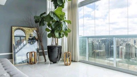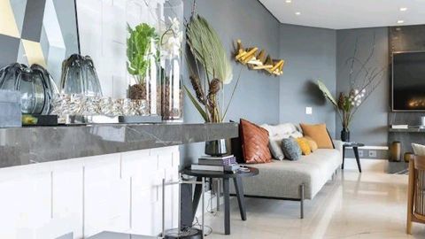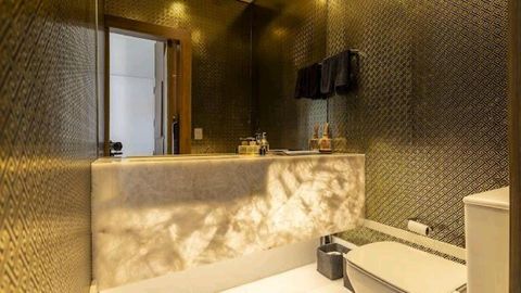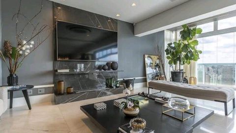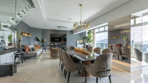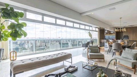 - Living integrado com dois ambientes, sistema de som embutido, ar-condicionado e automação em todos os cômodos