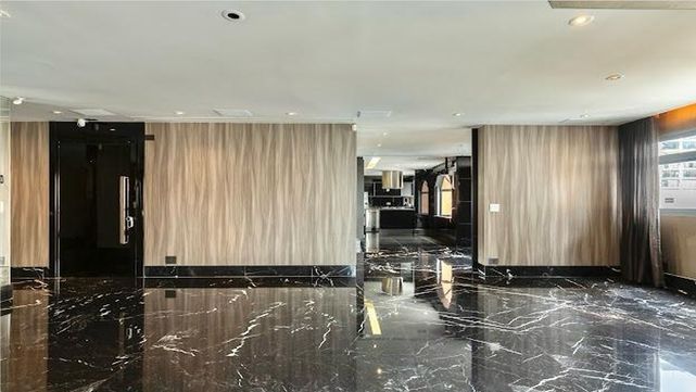 Logo ao entrar, a área social revela ambientes amplos e elegantes. A sala de estar e jantar se destaca pelo refinado piso em mármore preto polido, complementado por painéis espelhados que ampliam a luminosidade natural e criam uma atmosfera contemporânea e sofisticada. As amplas janelas em vidro curvo proporcionam uma agradável vista panorâmica da cidade.