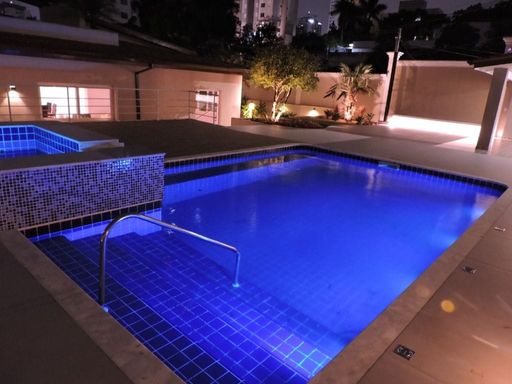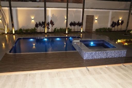 A área de lazer é o grande destaque — considerada uma das mais belas da região. São quase 500 m² dedicados ao convívio e entretenimento, capazes de receber mais de 70 pessoas com conforto. Uma piscina ionizada, um super spa revestido em mármore, sauna seca, salão de jogos e jardins planejados com palmeiras exuberantes compõem um cenário digno de resort. À noite, a iluminação cuidadosamente projetada transforma o espaço em um ambiente encantador e sofisticado.