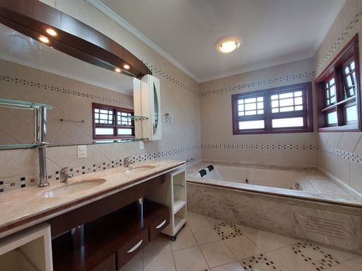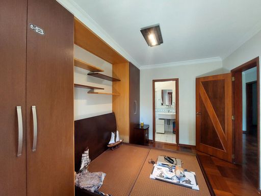O imóvel dispõe de cinco suítes elegantes, todas com closets e banheiros privativos, além de sete banheiros no total. A planta foi cuidadosamente projetada para oferecer amplitude e funcionalidade, incluindo três closets adicionais, duas salas de escritório, home theater, sala íntima e uma sala de TV equipada com piso aquecido, proporcionando aconchego e requinte.