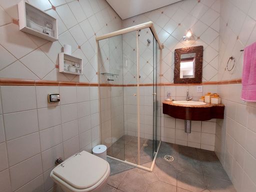 Entre os diferenciais, destacam-se os 12 aparelhos de ar-condicionado distribuídos em todos os ambientes, além de duas garagens — uma no nível térreo e outra no nível inferior — que oferecem comodidade e segurança para até oito veículos.