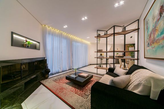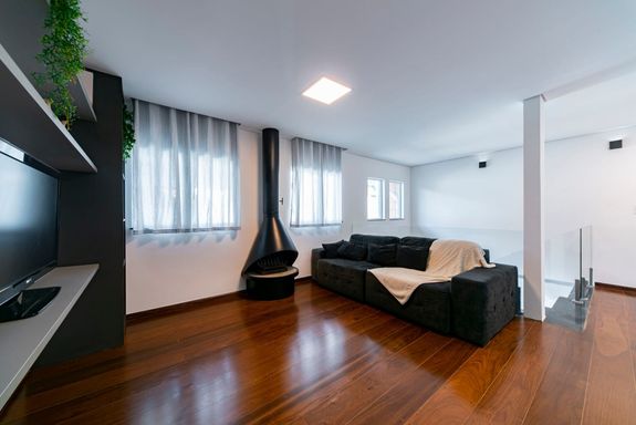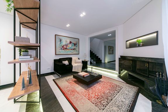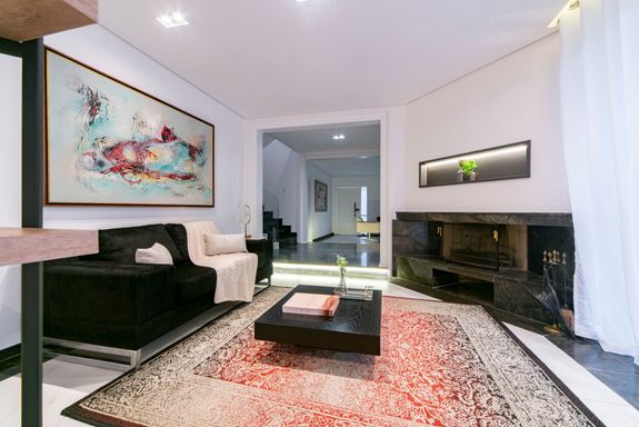 A residência é sólida, espaçosa e muito bem distribuída, com excelente insolação e ventilação natural. No pavimento térreo, conta com escritório, salas de estar, jantar, lareira e TV, criando ambientes aconchegantes e funcionais. As amplas portas de vidro integram os espaços internos à charmosa área de lazer, verdadeiro destaque do imóvel, que dispõe de piscina, espaço gourmet coberto com balcão e churrasqueira, banheiro e vestiário de apoio, além de um anexo com sauna, área de descanso e depósito.