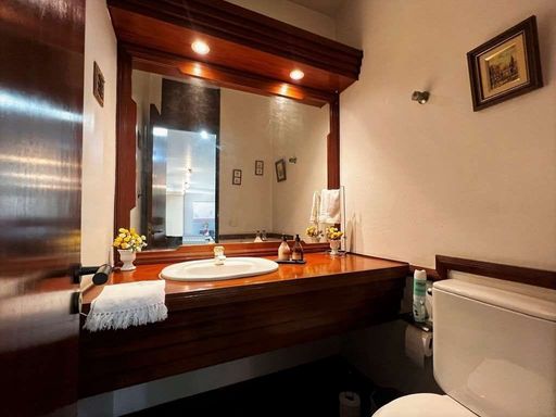 - Lavabo com claraboia e tampo de madeira