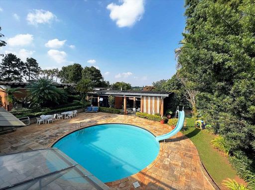 - Piscina redonda de 7 m de diâmetro com escorregador, depósito e casa de máquinas