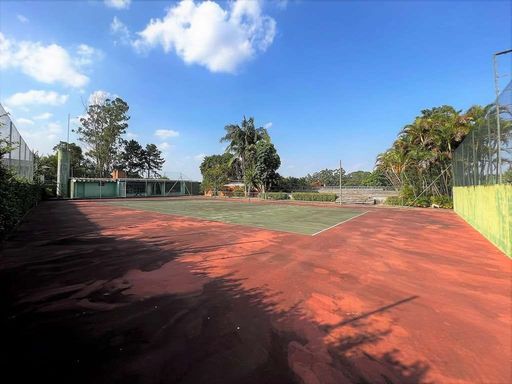 - Quadra de tênis Lisonda profissional, preparada para iluminação, com terraço mirante/arquibancada