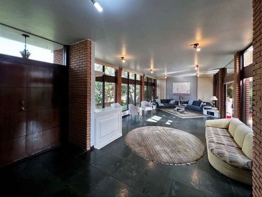 - Hall de entrada com porta dupla de madeira