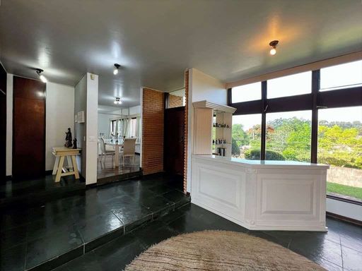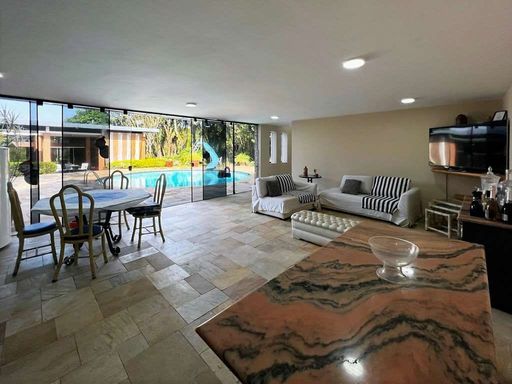 - Salas de estar, jantar reservada com parede de espelho e bar