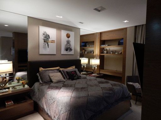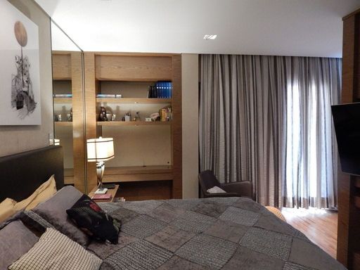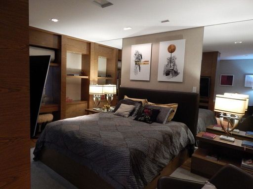 - Suíte máster com varanda privativa, sala de vestir e nichos decorativos.
