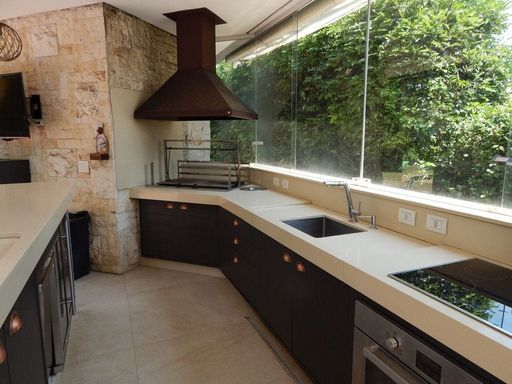 - Copa cozinha planejada com marcenaria Pirâmide, ilha e automação.