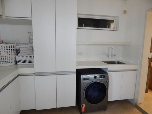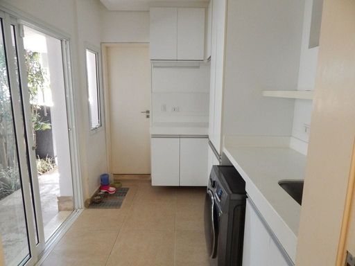 - Lavanderia funcional integrada à suíte de empregada e cozinha.