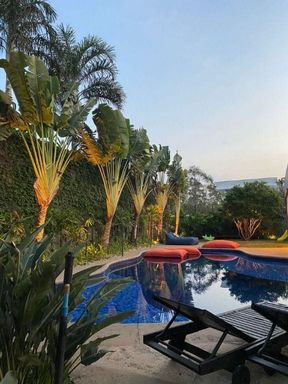 - Piscina de alvenaria: com espelhos d’água, prainha, iluminação, aquecimento e solarium.