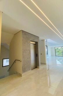A residência dispõe de quatro suítes, sendo duas máster, ambas com closets e hidromassagem, proporcionando requinte e privacidade. São três sacadas, duas delas voltadas para área de preservação permanente (APP), que oferecem vistas deslumbrantes e uma atmosfera de serenidade. O elevador, atendendo aos três pavimentos, garante acessibilidade e praticidade em todos os espaços.